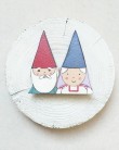 David el Gnomo, el más anciano del lugar con casi 400 años, es uno de los personajes de nuestra infancia. Vivía en el interior de un árbol junto a su esposa Lisa, de la cual estaba muy enamorado con la que compartía todas sus aventuras. Un gnomo muy sabio que cuidaba de todos los vecinos de su bosque ayudado de su valiente zorrito Swift y siempre atentos a sus enemigos los trolls. Si los sábados no te perdías ningún capítulo de esta serie que nos enseñó a cuidar de nuestro planeta y quien lo habita, este es tu broche pintado a mano y despacito en nuestro taller. Un regalo para los que aprendimos de David el Gnomo el respeto por lo que nos rodea.