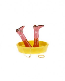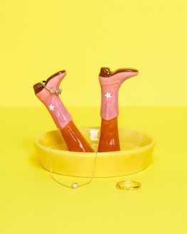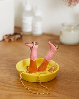 Coloca tus joyas cuando llegues a casa en estas piernas tan musicales. Este porta anillos con estas piernas acabadas en unas botas cowboy es ideal para tus anillos, pendientes y pulseras que estarán siempre a mano en la mesita de tu habitación. Un porta anillos que además es tan bonito que quedará perfecto en la decoración de tu casa.