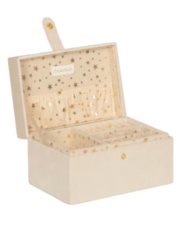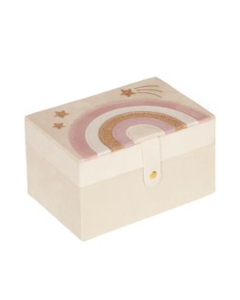 Un joyero beige empolvado con un arcoíris y estrellitas ideal para tener en la mesilla y dejar las joyitas del día a día. Con varios departamentos para tenerlo todo ordenado y a la vista. Además tiene dos pisos con lo que en el de debajo puedes guardar coleteros y horquillas. Un regalo que les encantará tener a las peques de la casa y un detalle muy cuqui para tener en nuestras habitaciones. Echa un ojo a los otros modelos de joyeros que te van a enamorar.