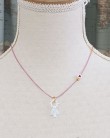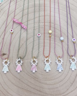 Este collar combina delicadeza y estilo en una pieza muy especial. Cuenta con una figurita de la Virgen del Pilar acompañada de una fina cadenita disponible en varios colores, para adaptarse a tu gusto y darle un toque alegre y versátil. Además, puedes personalizarlo eligiendo entre dos charms diferentes: un lacito de cinta o un corazoncito. Perfecto para regalar o para llevar en tu día a día, este collar es un detalle lleno de encanto que se adapta a cualquier ocasión.