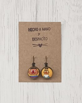 Epi y Blas forman parte de la infancia de muchas generaciones. Esas tardes divertidas con la merienda en la mano antes de los deberes en las que lo pasábamos pipa viendo como estos dos personajes hacían sus tareas de la casa, se contaban sus cosas o nos enseñaban a hacer la cama mientras cantaban canciones. Así que son los protagonistas de estos pendientes pintados a mano y despacito en nuestro taller para que los luzcas en tus orejitas.
