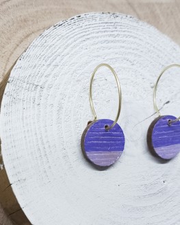 Pendientes con un circulito de madera y un aro de acero finito elaborados de forma artesanal.
