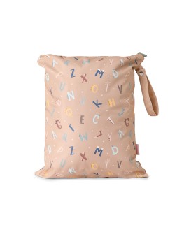En esta bolsa impermeable podrás llevar la ropa de recambio de los peques al cole, guardar la ropa de la clase de natación o llevarla de viaje para guardar la ropa interior. Ideal por su capacidad, esta bolsa tiene un asa con cierre de presión para que puedas colgarla en el carro o en la percha del cole o de la guardería. Combínala con la monadas de la colección Funny Letters.
